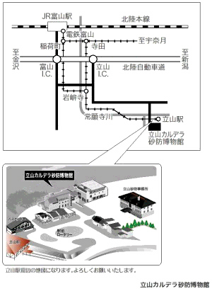 富山地方鉄道立山駅から徒歩1分:北陸自動車道立山ICから約40分