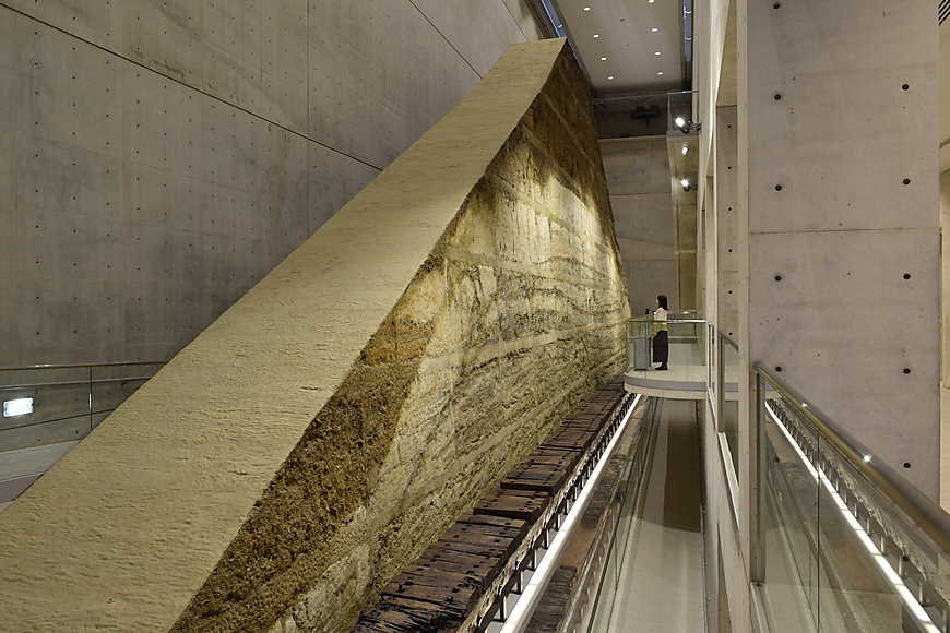 狭山池の改修工事に伴う発掘調査で出土した「重源狭山池改修碑」、飛鳥時代や江戸時代に造られた木樋、移築保存した高さ15mの堤体断面等、大形の土木構造物を展示しています。建物は安藤忠雄氏による設計です。