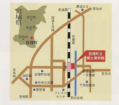 駅に隣接した城風の建物(愛称「悠里館」)の1階にあり、2階の町立図書館郷土資料コーナーと併せて利用できます。亘理の歴史等を紹介する常設展示のほか、収蔵資料展や年2回の企画展を開催しています。