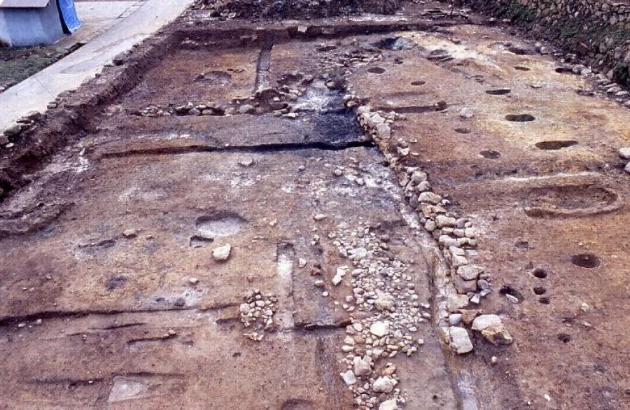 宮ノ前や、大森・銀山の北東端に当たり、代官所跡の東側100mの銀山川沿いに位置する銀精錬施設の遺跡である。発掘調査により16世紀末~17世紀初頭の道路や建物などの地下遺構が検出された場所である。建物跡のうちの一つは面積約24㎡の小規模なものであったが、内部には24基の炉跡が集中して存在することから、精錬の作業場と確認された。この作業場は仙ノ山から3㎞離れた場所に位置する精錬専用施設であり、産出銀の品位を高めるための作業場であったものと考えられている。