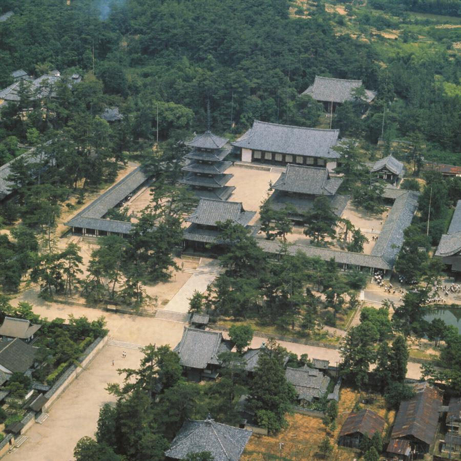 西院の主要建物である金堂・五重塔・中門・回廊は、中国や朝鮮にも残存しない初期の仏教建築様式であり、両院のほかの主要建物は主に8世紀から13世紀に建てられたものです。両院の周囲にある子院は12世紀ごろに建築が始まり、しだいにその数を増やしました。17世紀から18世紀にかけての建物も多く、日本の仏教寺院建築の変遷を窺うことのできる文化遺産が集約されている地域と言えます。