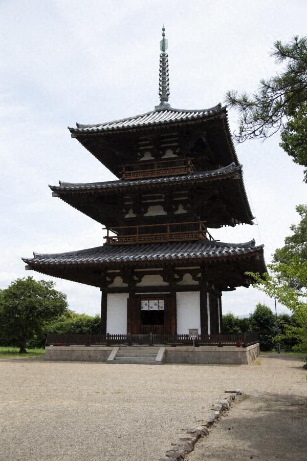 法起寺は7世紀に創建された寺院ですが、いまは706年に完成した三重塔のみが残っており、法隆寺西院と同様、初期の仏教建築様式による建物です。