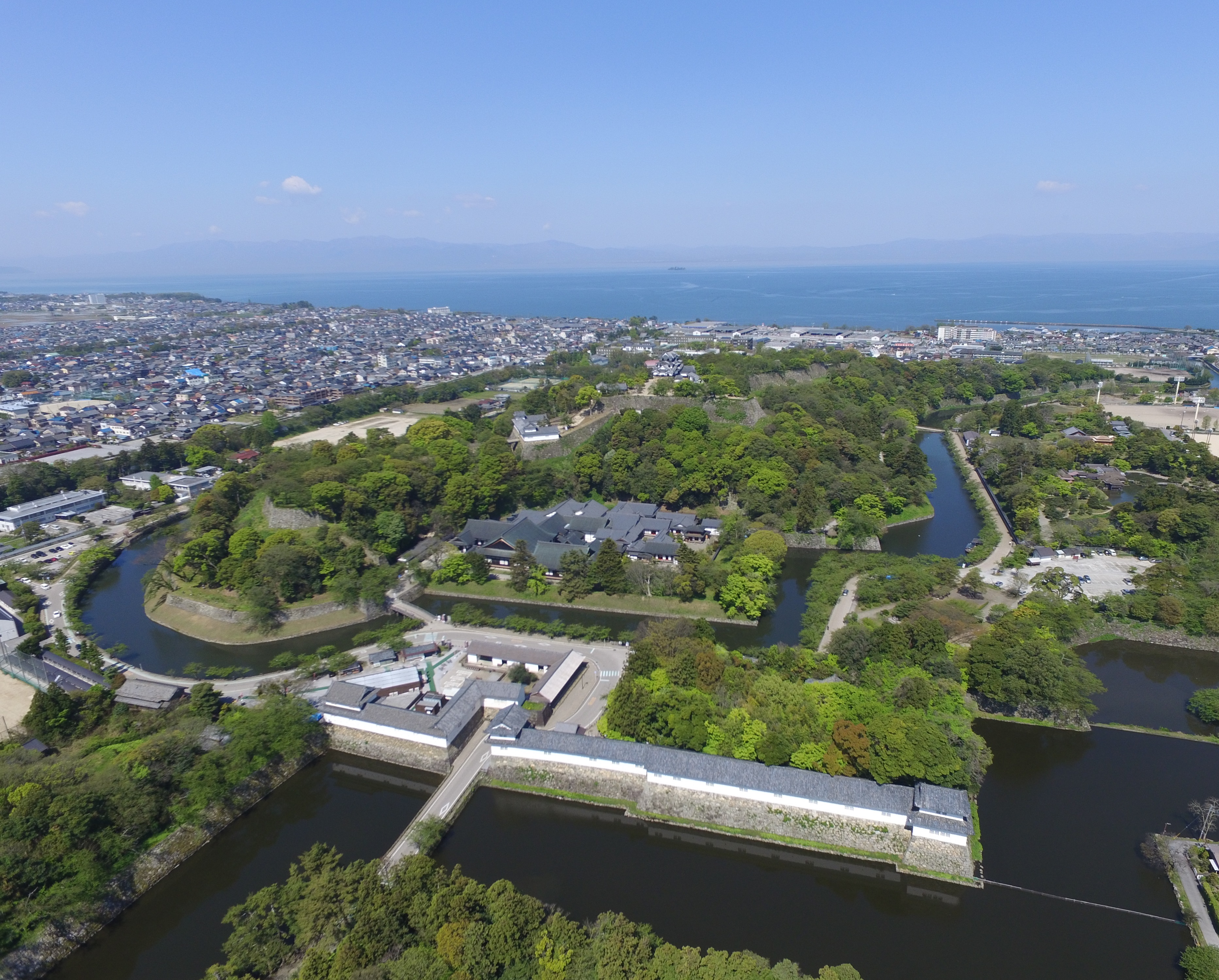 城下町は近代的な市街地に変わっていますが、街路の形態などに城下町特有の地割が残っています。現在、内・外郭とその外周部の一部について保存の措置が成されており、また、居室部分は一部が古図・古写真及び発掘調査の成果に基づいて復元され、博物館として活用するなど、基本構想に基づいた整備が図られています。