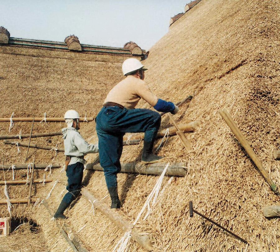 木・草・土などの自然素材を建築空間に生かす知恵,周期的な保存修理を見据えた材料の採取や再利用,健全な建築当初の部材とやむを得ず取り替える部材との調和や一体化を実現する高度な木工・屋根葺(ぶき)・左官・装飾・畳など,建築遺産とともに古代から途絶えることなく伝統を受け継ぎながら,工夫を重ねて発展してきた伝統建築技術。